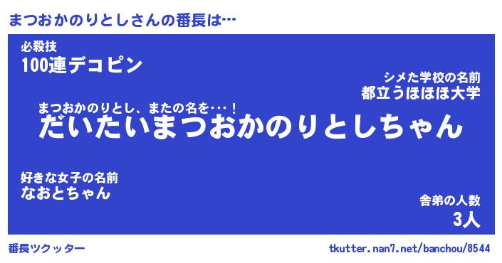 | ピコ太郎風あだ名 | 『マコ一郎』『ピマ次郎』『マツ二郎』 |