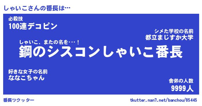 | 意味不明あだ名 | 『ペロリンしゃいこ』『永久保存しゃいこ』 |