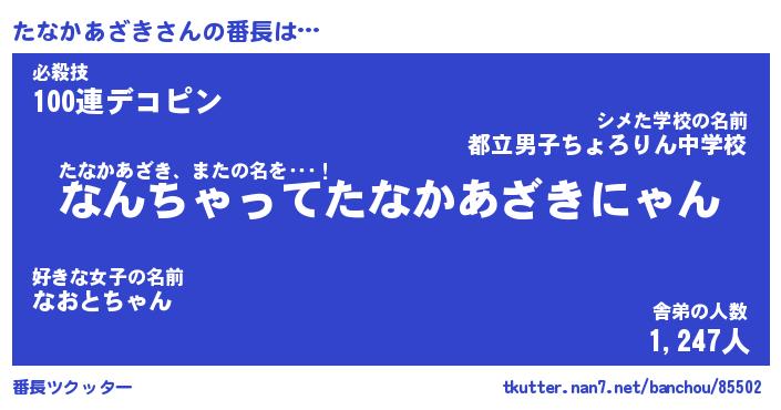 | 伝説のあだ名 | 『伝説のスナイパーたなかあざき』 |
