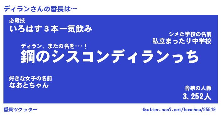 | 意味不明あだ名 | 『ペロリンディラン』『永久保存ディラン』 |