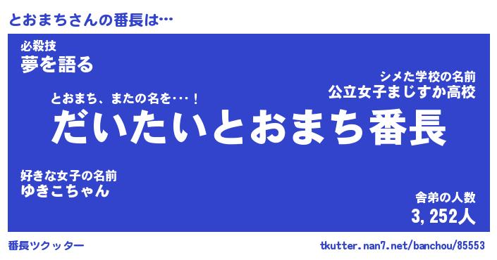 | 意味不明あだ名 | 『ペロリンとおまち』『永久保存とおまち』 |