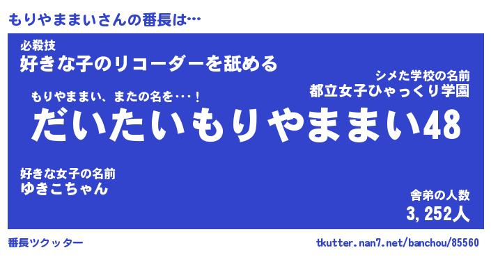 | 肩書あだ名 | 『もりやままいCEO』『もりやままい大統領』 |