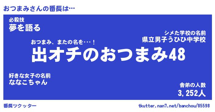 | ピコ太郎風あだ名 | 『オコ二郎』『ピオ史郎』『オツ十郎』 |