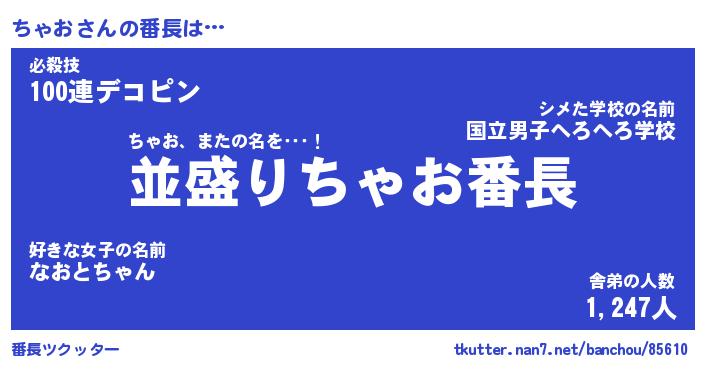 | 意味不明あだ名 | 『ペロリンちゃお』『ちゃおフォーエバー』 |