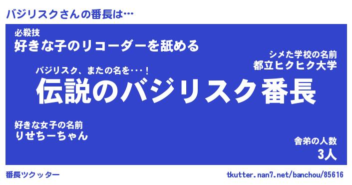 | 意味不明あだ名 | 『ペロリンバジリスク』 |