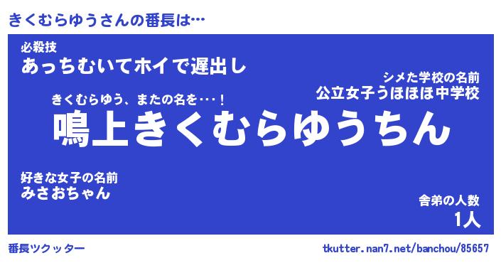 | 恥ずかしいあだ名 | 『プリティーきくむらゆう』『きくっちょ』 |