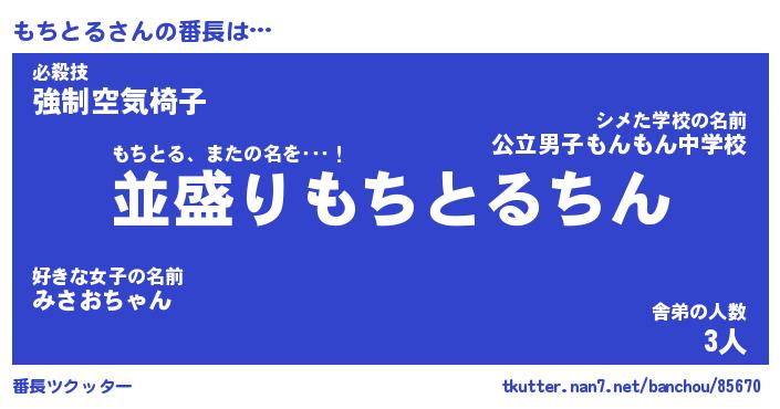 | 意味不明あだ名 | 『ペロリンもちとる』『永久保存もちとる』 |