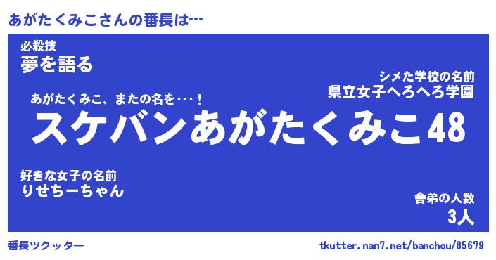 | 肩書あだ名 | 『あがたくみこ御曹司』 |