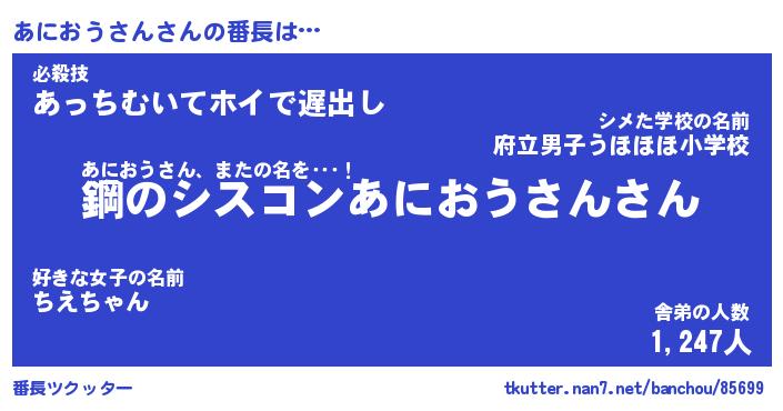 | ヒーロー風カッコイイあだ名 | 『スーパーアニオウサン』『銀牙騎士アニ』 |