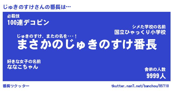 | ヒーロー風カッコイイあだ名 | 『スーパージュキノスケ』『天弓騎士ジュ』 |
