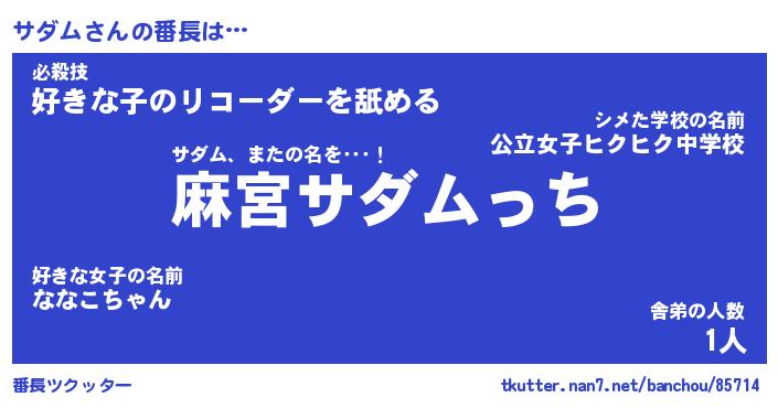 | 意味不明あだ名 | 『ペロリンサダム』『サダムフォーエバー』 |