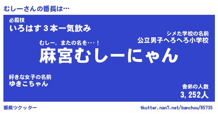 | 意味不明あだ名 | 『ペロリンむしー』『むしーフォーエバー』 |