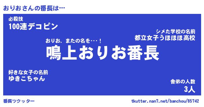 | ヒーロー風カッコイイあだ名 | 『スーパーオリオ』『ウルトラおりおマン』 |