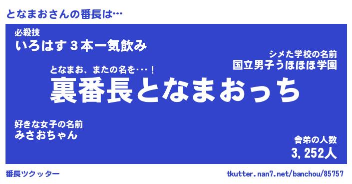| 肩書あだ名 | 『となまお社長令嬢』『となまお大統領』 |