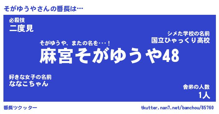 | ファンタジー風あだ名 | 『ソガフェル』『エターナルソガユウヤー』 |