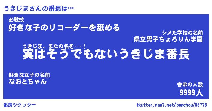 | 伝説のあだ名 | 『封印されしスナイパーうきじま』 |