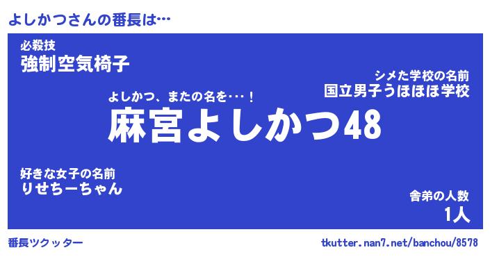 | 肩書あだ名 | 『よしかつ御曹司』『よしかつ大統領』 |
