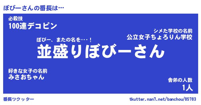| 2回繰り返すあだ名 | 『ぼびぼび』『ぼぼびび』『ぬれぬれ』 |
