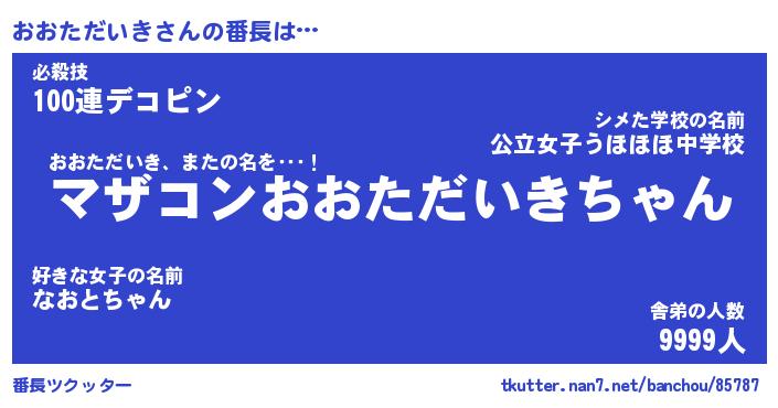 | 2回繰り返すあだ名 | 『おおおお』『おおおお』『あんあん』 |
