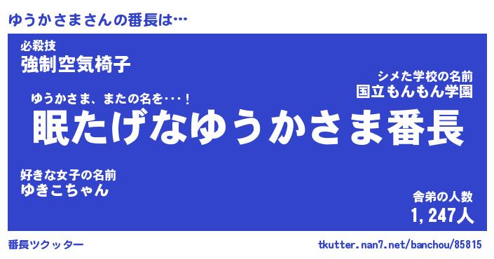 | ヘコむあだ名 | 『ゆうにー』『つくし』『ゆうぷりん』 |