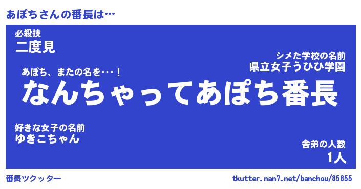 | 2回繰り返すあだ名 | 『あぽあぽ』『ああぽぽ』『あんあん』 |