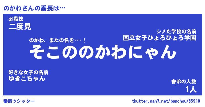 | 男性向けラノベタイトル風あだ名 | 『のかわの憂鬱』 |