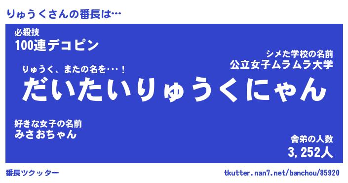 | 2回繰り返すあだ名 | 『りゅりゅ』『りりゅゅ』『いそいそ』 |