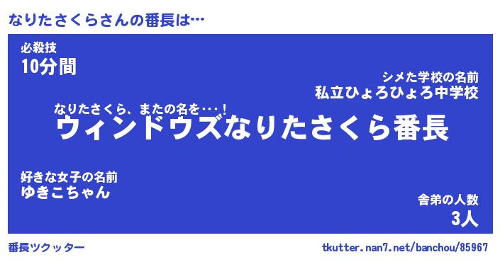| 伝説のあだ名 | 『伝説のスナイパーなりたさくら』 |