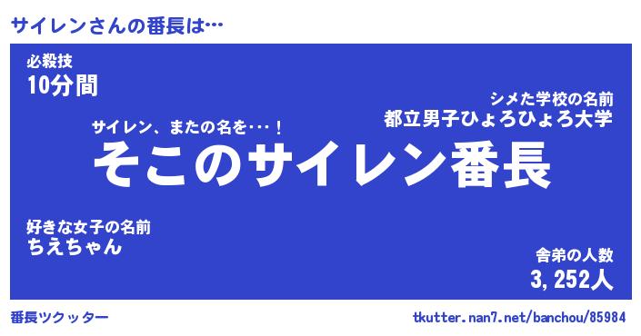 | 伝説のあだ名 | 『不死鳥のスナイパーサイレン』 |