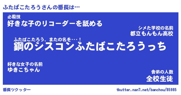 | 伝説のあだ名 | 『封印されしスナイパーふたばこたろう』 |