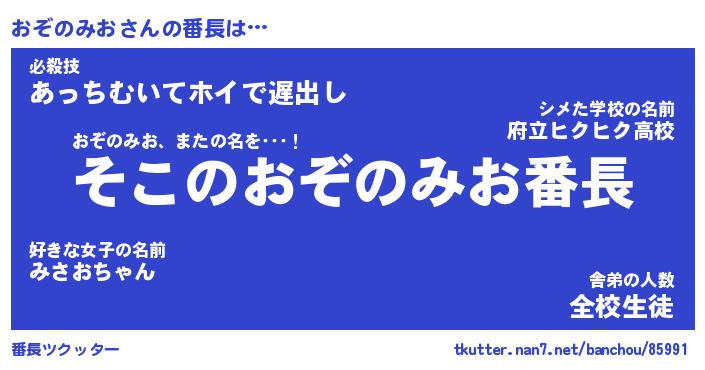 | 伝説のあだ名 | 『不死鳥のスナイパーおぞのみお』 |
