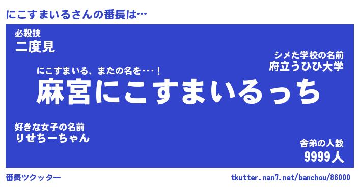 | ヒーロー風カッコイイあだ名 | 『スーパーニコスマイル』『天弓騎士ニコ』 |