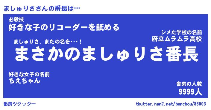| 欧米人風あだ名 | 『マイケルましゅりさ』 |