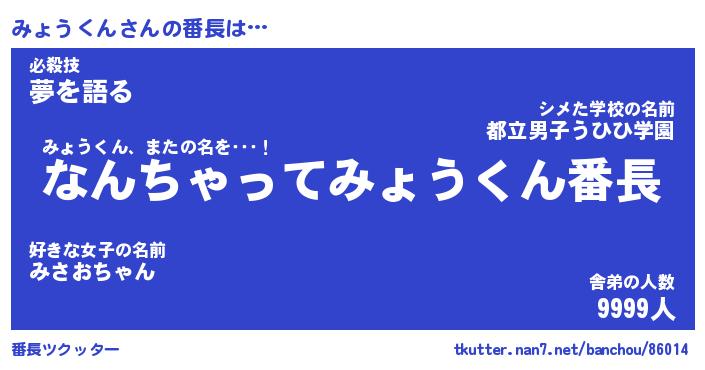| ヒーロー風カッコイイあだ名 | 『スーパーミョウクン』『天弓騎士ミョ』 |