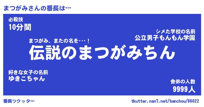 | 意味不明あだ名 | 『ペロリンまつがみ』『永久保存まつがみ』 |