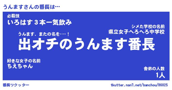 | ピコ太郎風あだ名 | 『ウコ一郎』『ピウ四郎』『ウン三郎』 |
