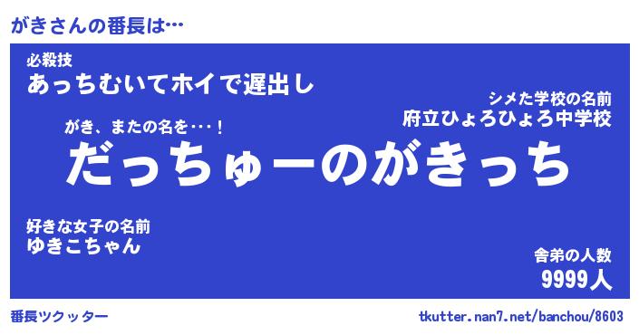 | 男性向けラノベタイトル風あだ名 | 『がきの憂鬱』 |