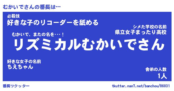 | ファンタジー風あだ名 | 『ムカフェル』『エターナルムカイデー』 |
