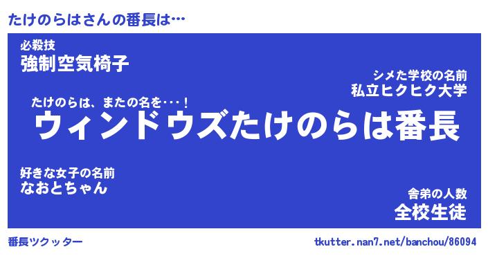 | 肩書あだ名 | 『たけのらは御曹司』『たけのらは塾長』 |