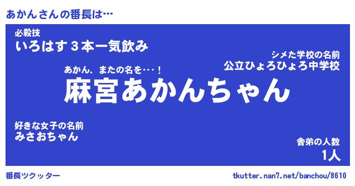 | ヘコむあだ名 | 『あかにー』『なまこ酢』『あかっぺ』 |