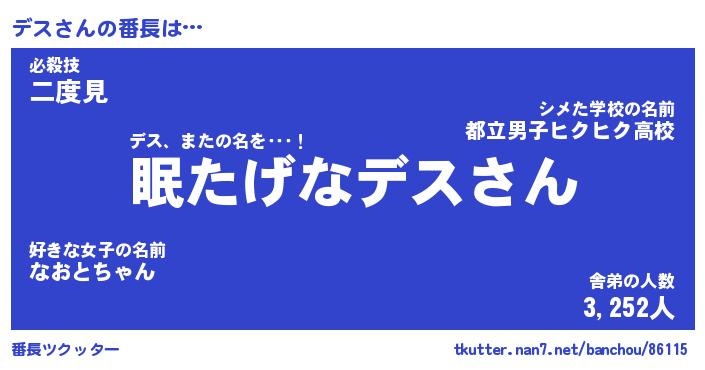 | 2回繰り返すあだ名 | 『デスデス』『デデスス』『ぬめぬめ』 |