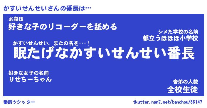 | ヘコむあだ名 | 『かすふぇ~』『なまこ酢』『かすお』 |