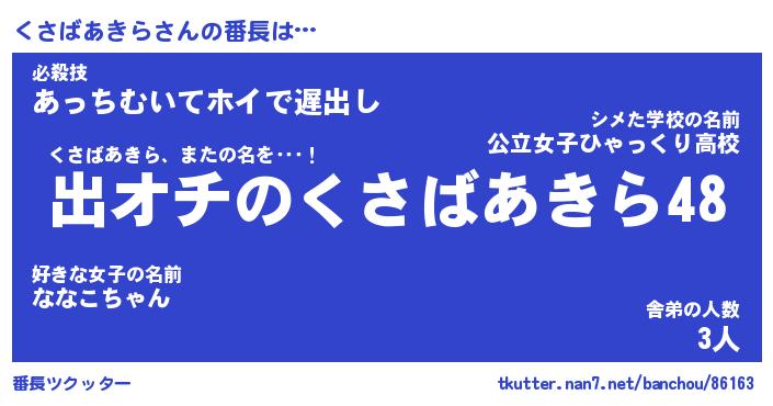 | 胡散臭い通販商品みたいなあだ名 | 『必ず成功するブレスレット…その名も「くさばあきら」』 |