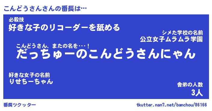 | ポケモン風あだ名 | 『コンチュウ』『コンドダネ』 |