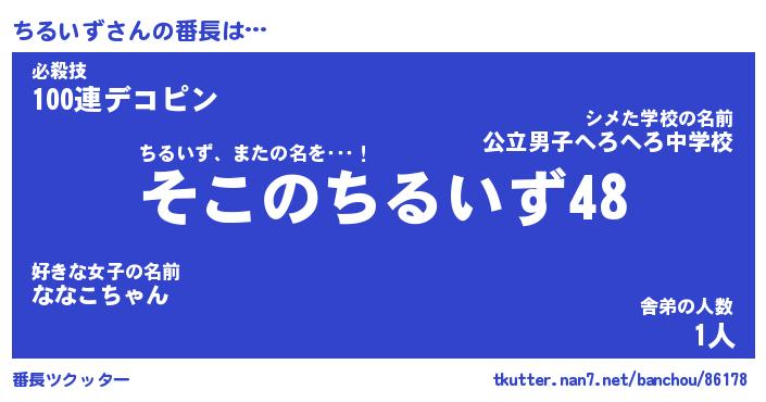 | 意味不明あだ名 | 『ペロリンちるいず』『永久保存ちるいず』 |