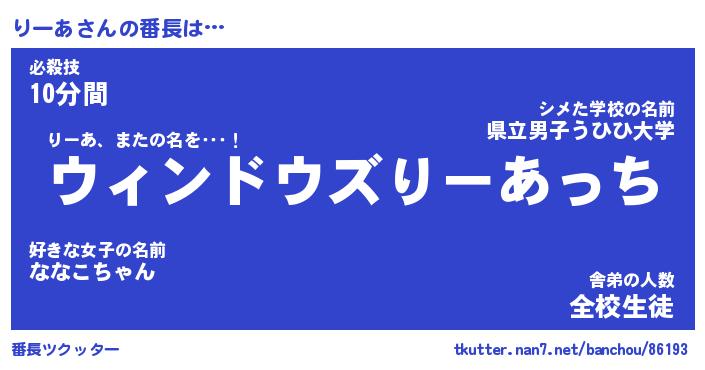 | 伝説のあだ名 | 『伝説のスナイパーりーあ』 |