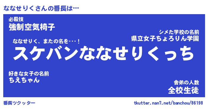 | 伝説のあだ名 | 『不死鳥のスナイパーななせりく』 |