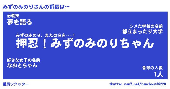 | ヒーロー風カッコイイあだ名 | 『スーパーミズノミノリ』『魔戒騎士ミズ』 |