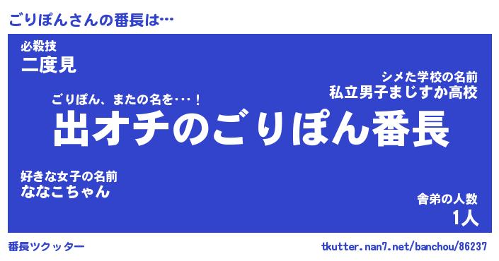 | 肩書あだ名 | 『ごりぽん御曹司』『ごりぽん国家主席』 |