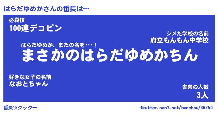 | ポケモン風あだ名 | 『ハラチュウ』『ハラダダネ』 |